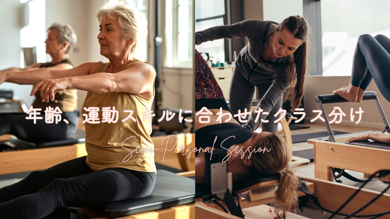 また、年齢層に合わせたクラスも開催しているので、レッスンについていけないかも…という心配は入りません!「この動きで合ってる?」という不安も解消し、ピラティスの効果を最大限に引き出します。
